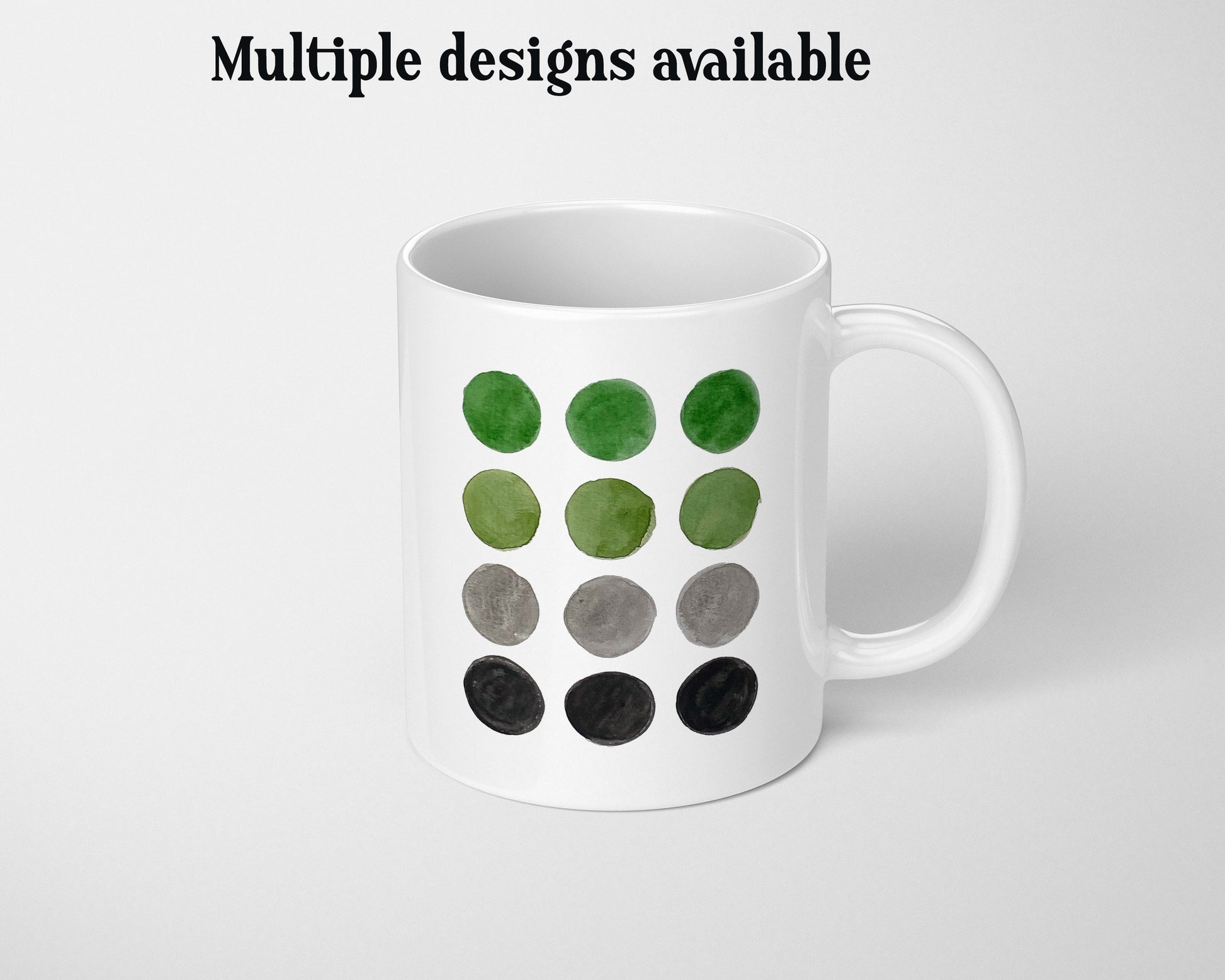 Sip your coffee with pride with our Aromantic Pride Coffee Mug! Our vivid, fade-resistant design will never dull - it's painted by hand, scanned and then printed on both sides to fit comfortably in your right or left hand. Durable and dishwasher safe, this 11 or 15 ounce mug is full of personality and keeps your drinks warm! Live boldly and raise a mug to your Aromantic pride!